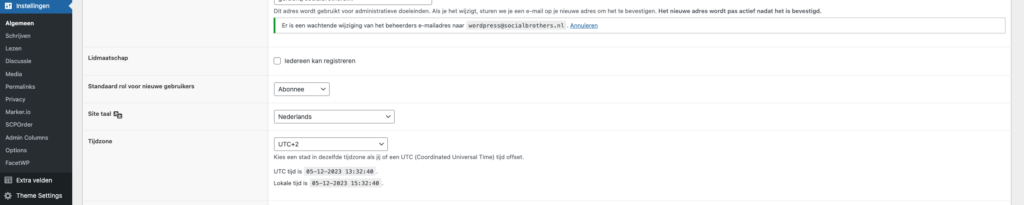 Standaard staat WordPress ingesteld op de tijdzone UTC (Coordinated Universal Time). Om de tijdzone voor je website aan te passen, ga je naar “Instellingen” en vervolgens naar “Algemeen”. Hier kun je de tijdzone kiezen in het dropdown-menu onder “Tijdzone”.